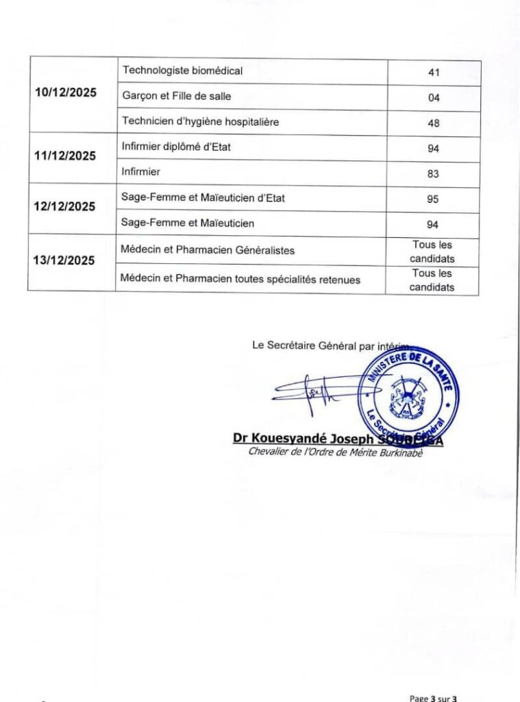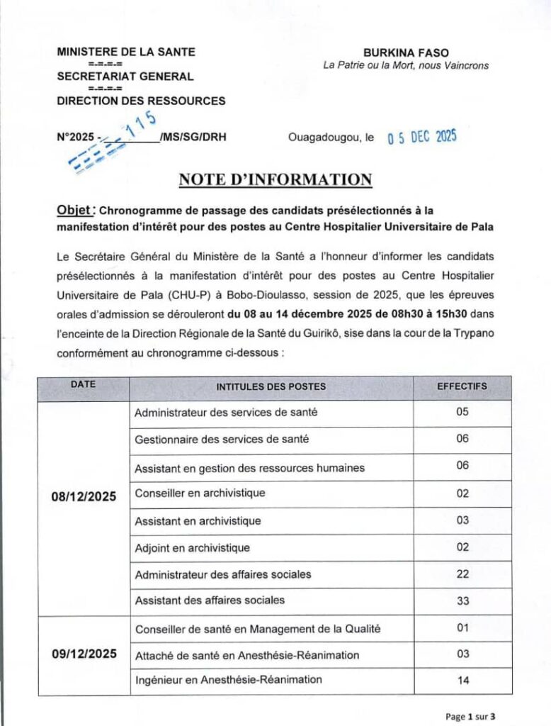 Accueil / Sexualité / Chronogramme de passage des candidats présélectionnés à la manifestation d’intérêt pour des postes au Centre hospitalier universitaire de Pala (CHU-P)