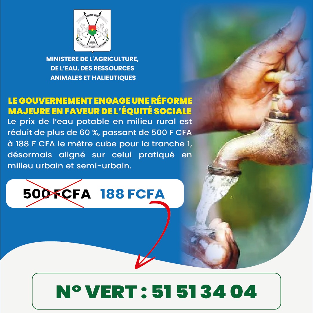 Cette décision s’inscrit dans la vision du chef de l’Etat, le capitaine Ibrahim Traoré et de son gouvernement qui engage ainsi une réforme majeure en faveur de l’équité sociale. Elle vise à garantir un accès équitable aux services essentiels pour toutes les populations, sans distinction, à réduire les inégalités sociales et à assurer une meilleure qualité de l’eau distribuée sur l’ensemble du territoire.